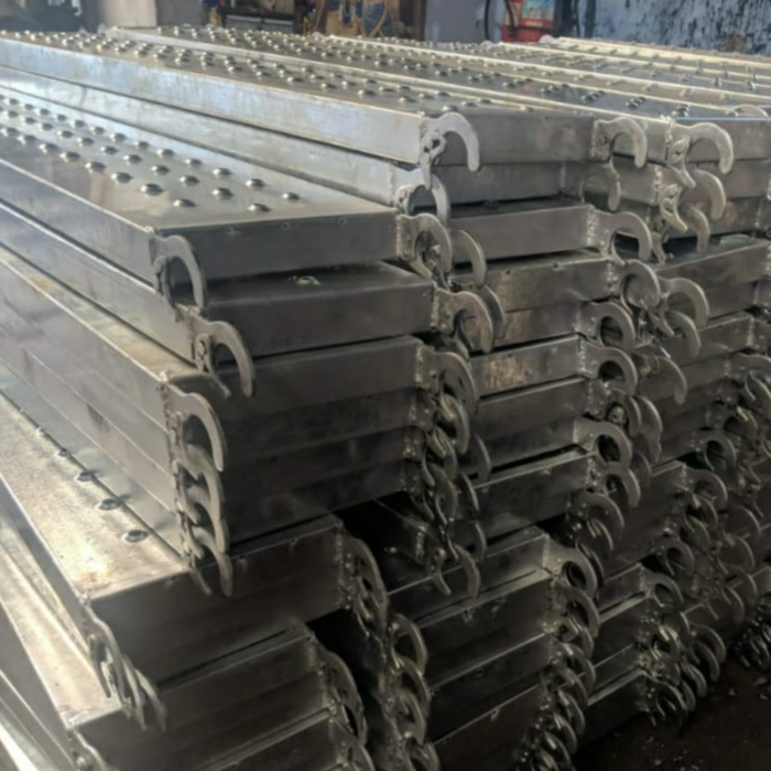 GI Antiskid Plank Its main purpose is to facilitate a person to stand, move and work suitably, without any complexity.The provided products are suitable for pipe & cuplock type scaffolding.These planks are made of G.I sheet and punched through to provide skid free surface.They are used on scaffolds as walkways providing very strong support during usage. They can be easily shifted from one level to another during erection or construction.